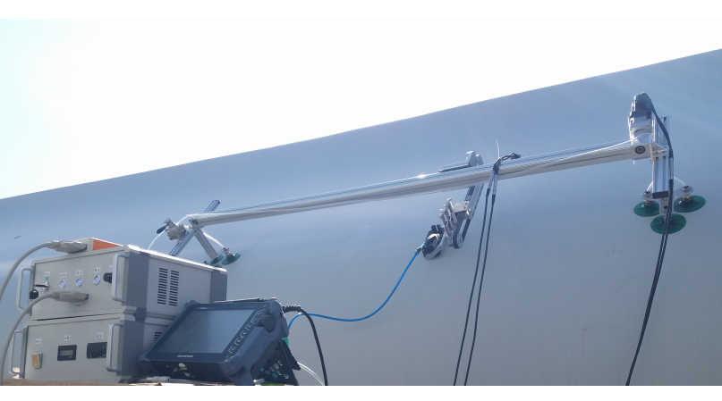 气孔、脱黏等缺陷快速检测而开发。真空吸盘可使扫查器牢固的吸附于叶片表面,